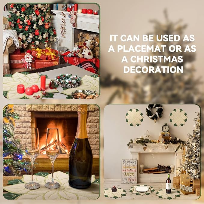 - Elegant Pattern: applique placemats are beautiful in style, and gold with green embroidered placemats with decals are the elements of Christmas, which can add a festive atmosphere to your activities; The layer design makes the product more effectively safeguards the desktop from being burned