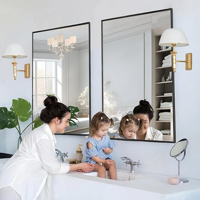 - 【Decortive Wall Mirror】 The black frame mirror 30x40 inch large mirror is ideal choice as a bathroom mirror, vanity mirror, shower mirror. it is also a great decortive wall mirror, you can use it in entray, living room ect. it will add light and expand visual space, make your home more eye-catching.