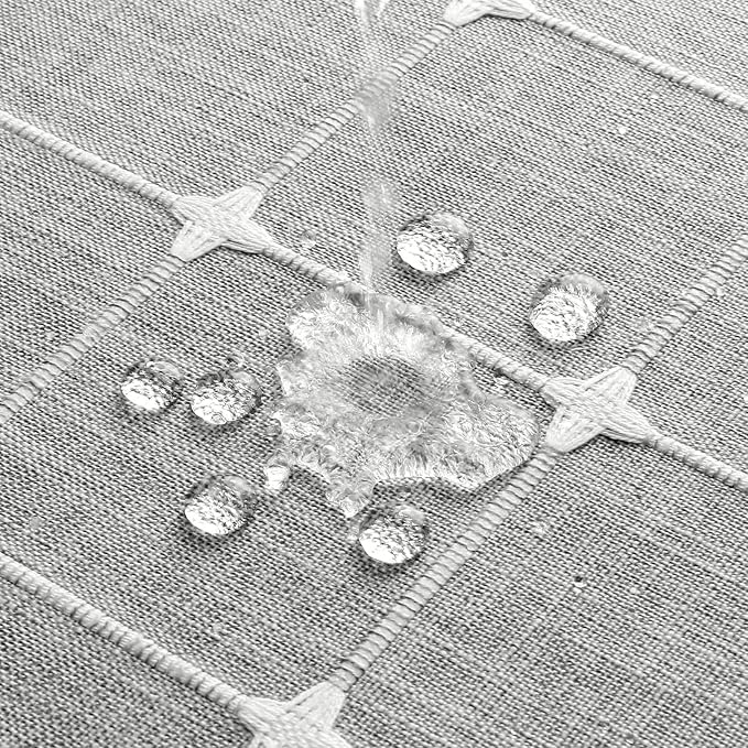 - Wrinkle Free & Ultra Thick Fabric - 310 GSM, 15% linen, 85% polyester creates farmhouse like effect for this grey shower curtain. Its weight is up to 2.65 pounds, so that it could keep in place. The quality curtain is elegant and soft, which can deliver a country-like bathroom environment.