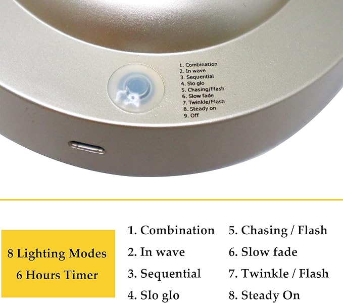 - 8 Lighting Modes: Combination, in wave, sequential, slow glow, chasing flash, slow fade, twinkle flash and steady on. Since each mode has a different lighting effect;