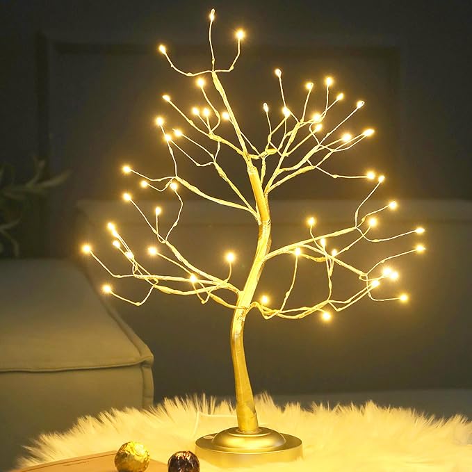 FUCHSUN 108 LED Tabletop Tree Light, Lighted Bonsai Fairy Twinkle Tree Lamp with 8 Lighting Modes & Timer, Home Bedroom Living Room Christmas Decoration, Battery/USB Powered (Golden Branches)