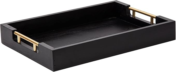 - Modern tray decoration style, with aluminum golden handle. The size is 16 x 12 inches, enough to hold all your parties and daily food! Whether you are storing towels in the bathroom or filling it with coffee, biscuits, snacks, rosé wine, fruit for an unforgettable brunch, this tray is the perfect choice!