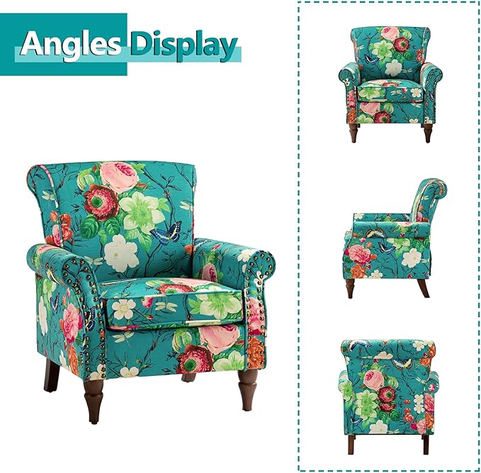 - Charming Furniture Addition: With beautiful floral patterns and wingback design, this chair showcases a charming appearance, while wooden legs and retro rivet trim create a sense of retro timeless style to your home decor. You can put this chair in your living room, bedroom or office.
