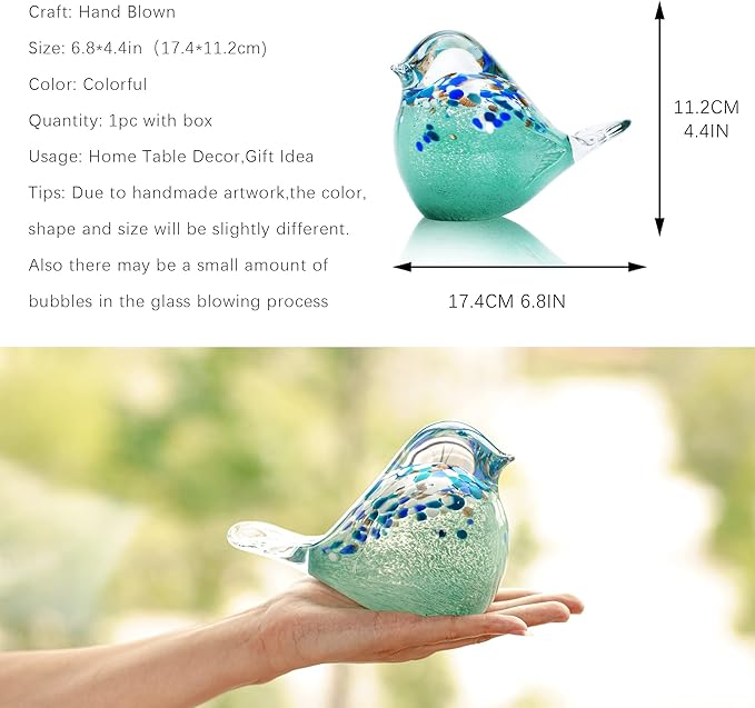 - HANDMADE CRAFT- Every our glass bird is 100% handmade, so every single one is unique, it may be a little different from the pictures or other birds. And there may be a small amount of bubbles in the glass blowing process. Please understand.