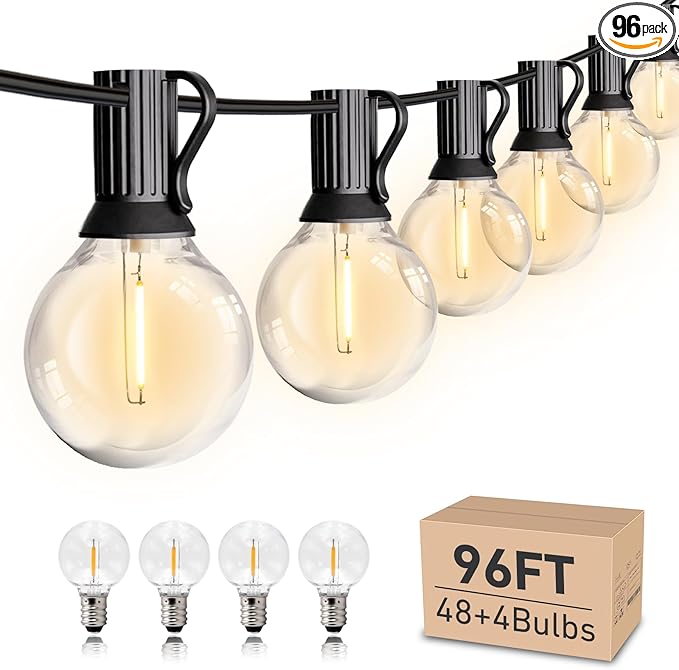 HISTAR 96 ft Outdoor String Lights 52 Led Waterproof G40 Bulbs, Patio Lights for Decorating Yard, Porch, Deck, Fence, Balcony, Backyard