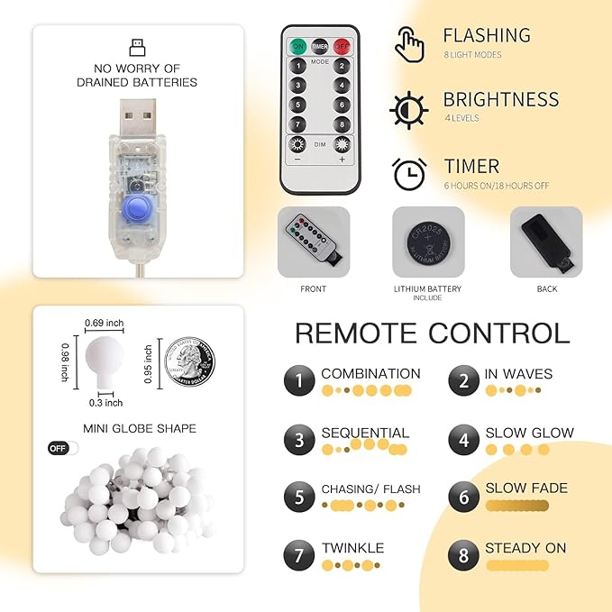 - GLOBE SHAPED: Beautiful design with a globe shape and clear wire, makes the fairy lights a perfect addition for an inviting classroom or as decor for a dorm room.