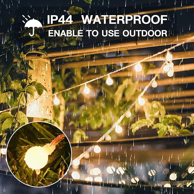 - WATERPROOF: With an IP44 waterproof rating, the warm string lights can withstand normal weather conditions, no need to disassemble the string lights on rainy days. Additionally, the led string lights are heat-resistant, and stay cool for long time use.