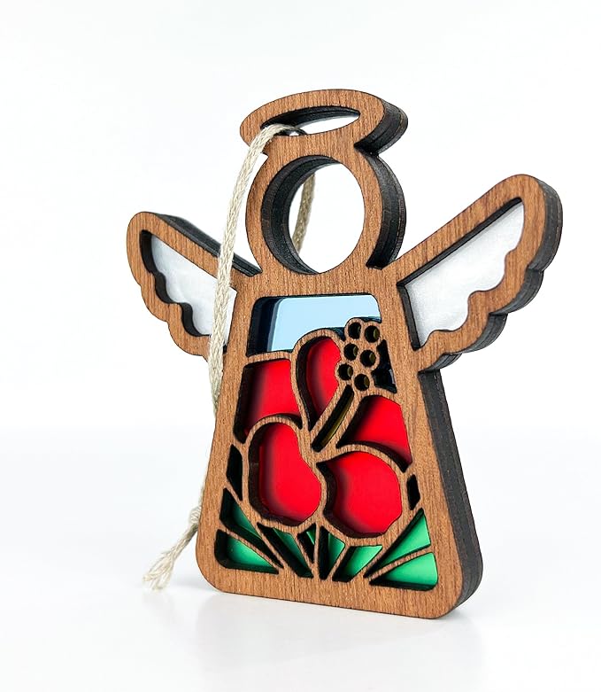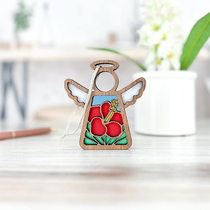 Hibiscus Flowers Decoration - Tropical Beach Ornaments - Angel Ornaments for Christmas Tree - Red Flower Wall Decoration - Hanging - 3.5" (H)