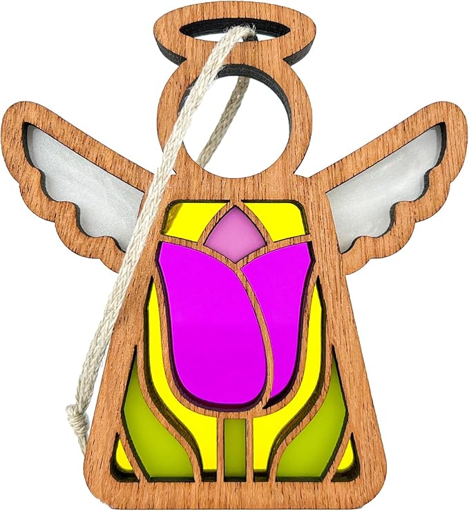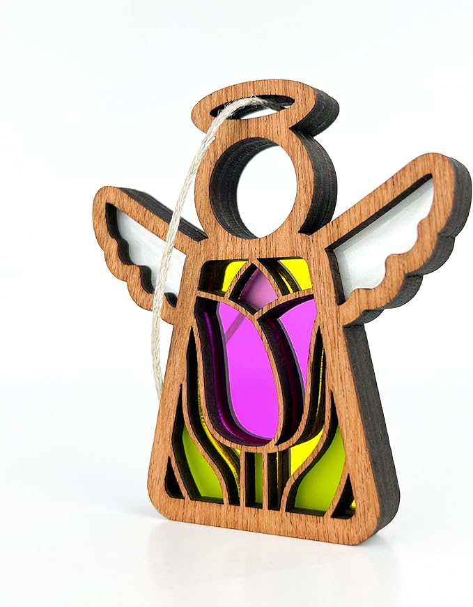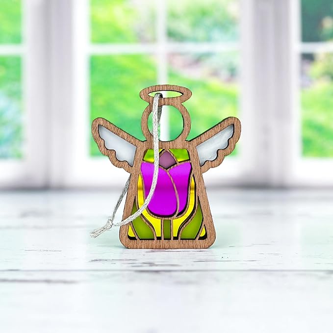 - CAPTIVATING SUNLIT BEAUTY - Each angel showcases a unique motif at its center—reminiscent of the beauty found in stained glass—evoking wonder and delight. The three-layered design ensures a mesmerizing display from both front and back, especially when placed near a window where sunlight brings their colors to life.