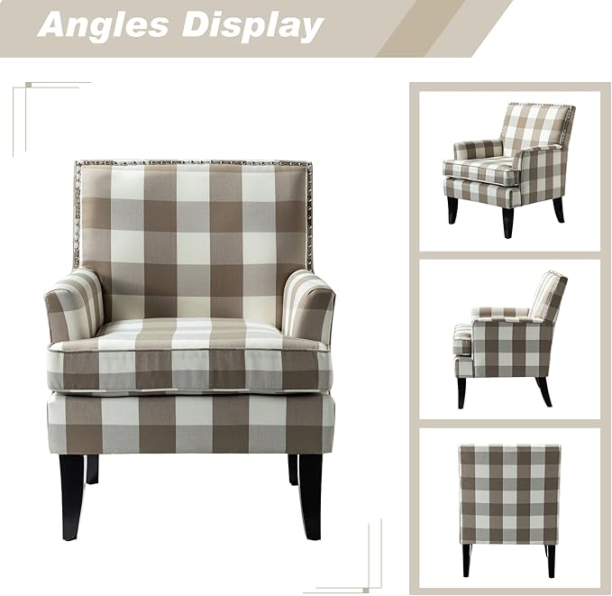 - MODERN DESIGN ACCENT CHAIR: Elegantly crafted with nailhead trim, button-tufted diamond wing back design, hand-crafted upholstery details & traditional wooden legs.