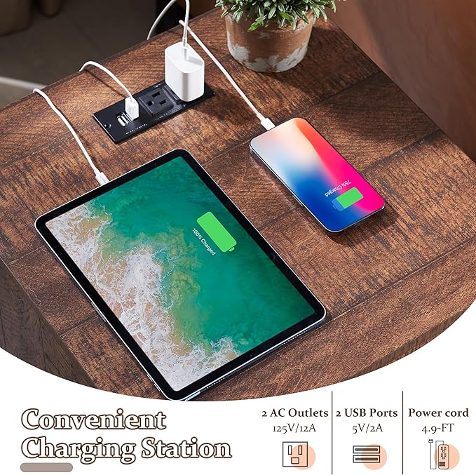 - 【Integrated Charging Station】: Equipped with two AC outlets and two USB ports, along with a cord management hole, this nightstand allows you to conveniently charge your devices while keeping cords organized.