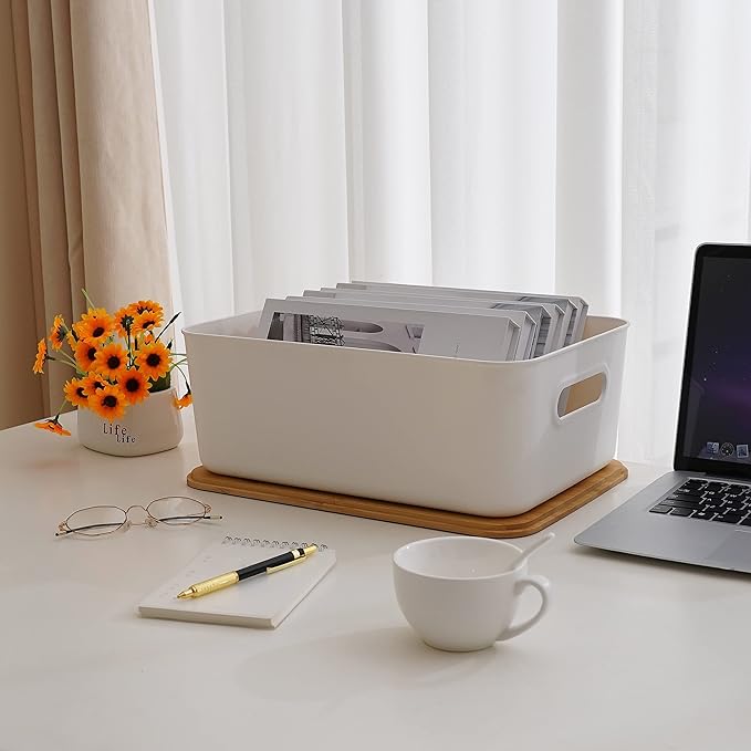 - 【Combine Natural Stylish and Practical】The crisp white base pairs effortlessly with the natural bamboo lid to fit in with any decor. Great for living rooms, bedrooms, home offices, and even cabinets or closets.