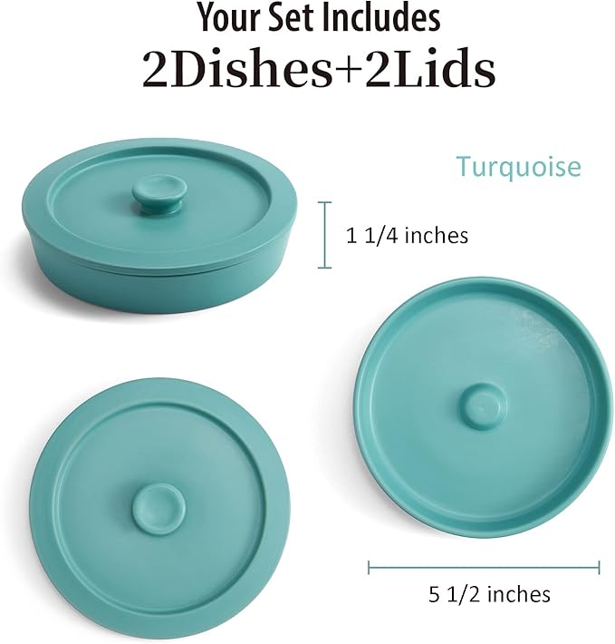 - ๐๐๐ญ ๐จ๐ ๐ ๐๐ข๐ฌ๐ก๐๐ฌ & ๐ ๐๐ข๐๐ฌ: Set includes 2 dishes with 2 lids in turquoise. Each rimming plate measures 5 1/2 inches in inside diameter. Size is perfect to use as margarita salt rimmer, martini sugar rimmer, tequila and bloody mary accessories, etc.