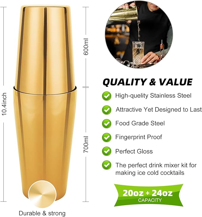 Cocktail Shaker Set, 23-Piece Boston Stainless Steel Bartender Kit with Acrylic Stand & Cocktail Recipes Booklet, Professional Bar Tools for Drink Mixing, Home, Bar, Party - Gold