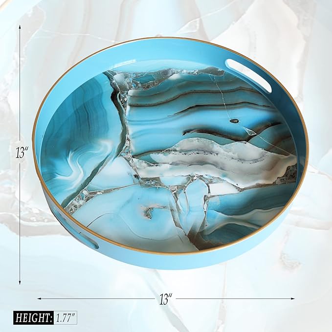 - 【Elegant Design】Decorative tray made of thick acrylic, digitally printed pattern, handmade edges processing and glossy finish.