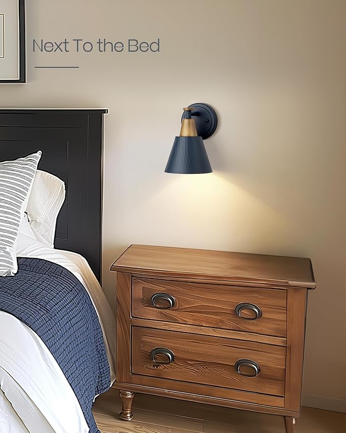 FEMILA Modern Wall Sconces Set of 2, 1-Light Wall Lighting Bathroom Sconces Single Vanity Light, Hammered Metal Shade, Dark Blue,4FG59B-2 Blue