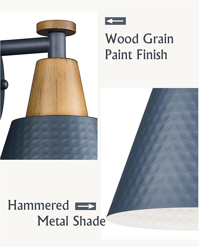- 【Modern & Industrial Design】This wall sconces set of two with wood grain paint finish mixed hammered metal shade looks elegant enough but not too fancy which give people a clean look.