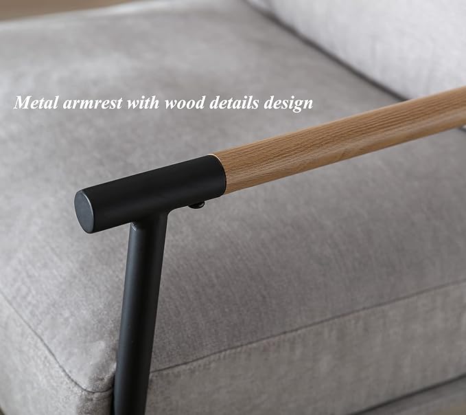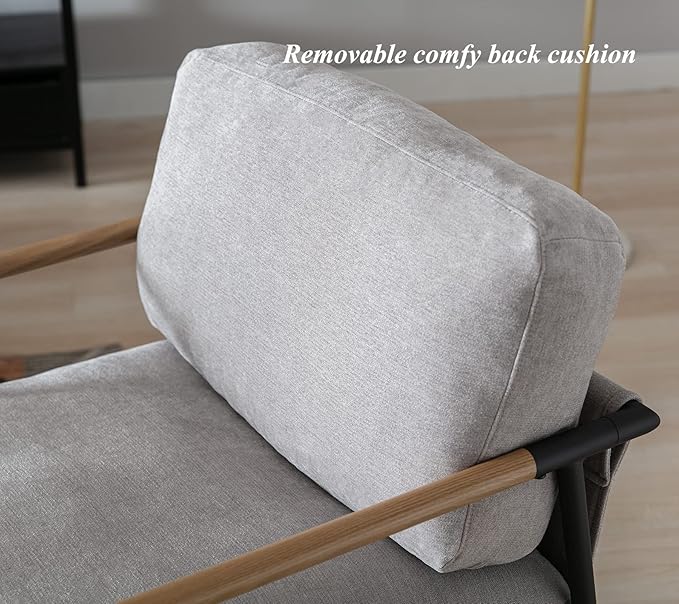 DUOMAY Mid-Century Modern Accent Chair Armchair, Soft Linen Fabric Sofa Lounge Chair Reading Chair with Metal Leg for Living Room Bedroom Office, Grey