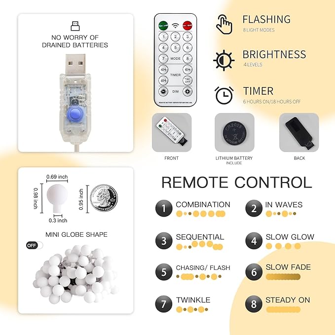 - GLOBE SHAPED: Beautiful design with a globe shape and clear wire, makes the fairy lights a perfect addition for an inviting classroom or as decor for a dorm room.