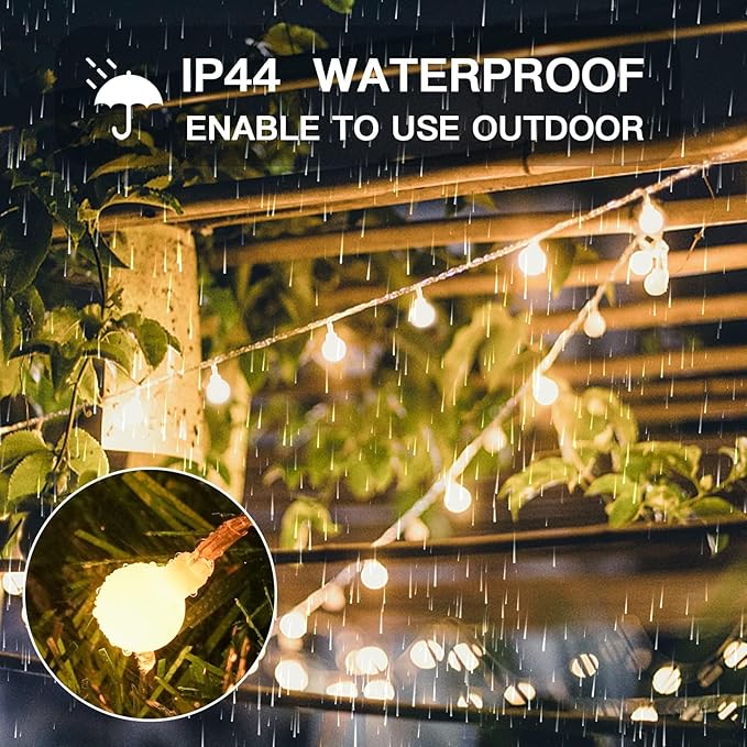 - WATERPROOF: With an IP44 waterproof rating, the warm string lights can withstand normal weather conditions, no need to disassemble the string lights on rainy days. Additionally, the led string lights are heat-resistant, and stay cool for long time use.
