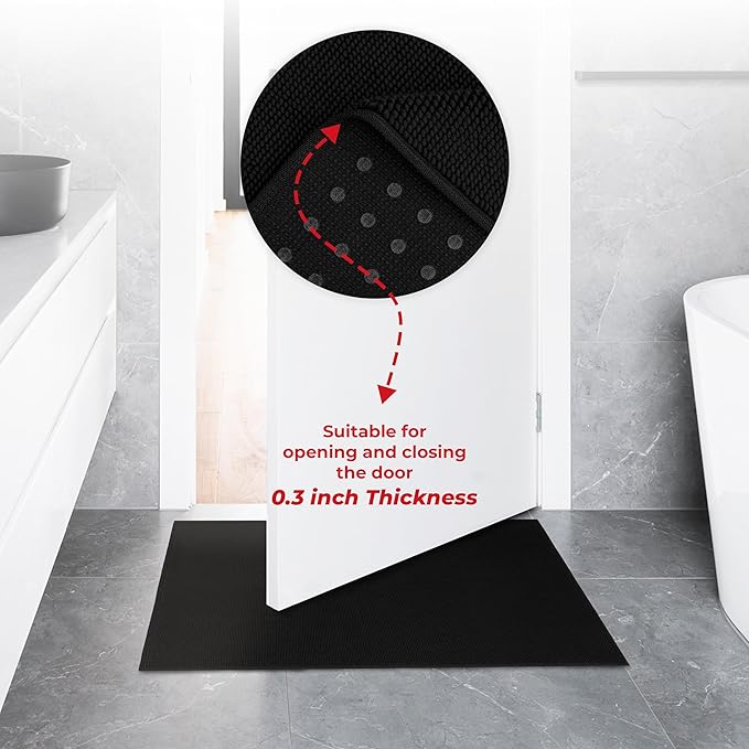 American Soft Linen Bath Rug, 20 in 34 in 100% Cotton Bath Mats Rugs for Bathroom, Slip Reducer Washable Shaggy Form Area Rugs, Black Bath Rug