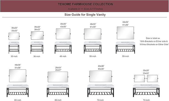 - Sturdy Wall Brackets: This tilt vanity mirror is coming with adjustable wall brackets , each bracket is premium quality zinc alloy material, which is extremely durable and safe, avoid loosening, slipping or rust found in some other cheaper brands.