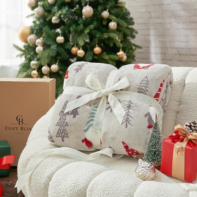 Cozy Bliss Gnome Throw Blanket Christmas Blanket Warm MilkyPlush™ Throw Blanket,Ultra Soft Cozy Blankets for Couch,Sofa and Bed(Xmas Gnome,60"x80")