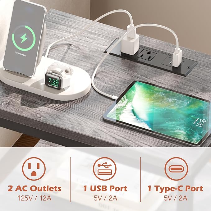 - 【Night Stand with Charger Station】: 1 USB port, 2 outlets and 1 Type-C port are on the Superjare nightstand for bedrooms. Imagine plugging in your lamp, phone or watch before sleep, charger station is just within your reach, then be happy to greet the morning with fully charged devices. Plus: Contain patent pending drawer slide
