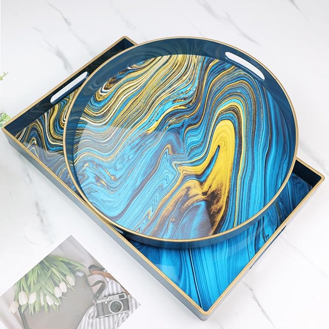 - 【Elegant Design】Decorative tray made of thick acrylic, digitally printed pattern, handmade edges processing and glossy finish.