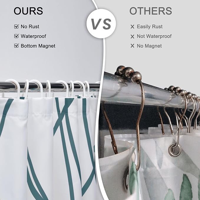 - EASY TO INSTALL -- This shower curtain set includes hooks for easy installation. The bottom of the shower curtain is designed with a 20g weighted hem, making it less likely to be lifted by the wind.