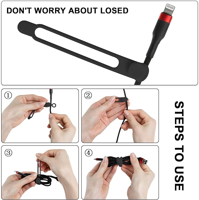 - 【Right Size & Adjustable】 This cable tie with 4.2-Inch length is unexpectedly suitable for earphone cable, data cable, mouse cable, audio cable, network cable and more. The size and the weight are small and light enough to carry away without any burden
