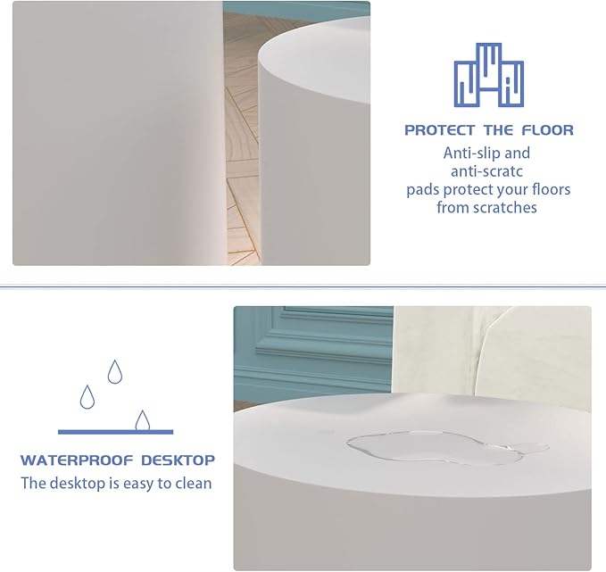 - 🔥【COMBINE FREE】The white Coffee Table sets including one Coffee table (Φ 18.89 x H 14.96 inch) and one Side table (Ø 14.96 x H 12.59 inch) can be arranged in multiple ways. You can combine them as you like;