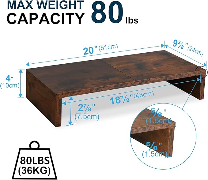- 【Better Support】Stand can hold 80Ibs, there is a thick steel pipe stabilizing support structure on the back avoid shaking. TEAMIX monitor riser made of high quality MDF wood board, strong and sturdy.