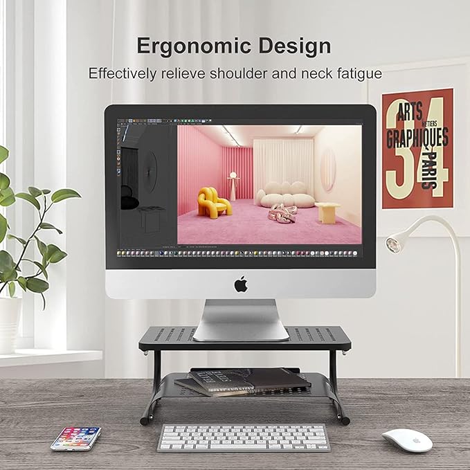 - ERGONOMIC DESIGN - This monitor stand riser can not only raise the monitor to a suitable height, but also improve your sitting posture and relieve neck and shoulder pain.