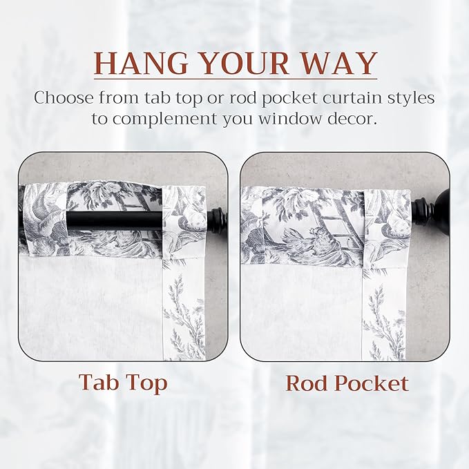 - Stylish home upgrade: Elevate your space with these timeless Toile curtains—perfect for farmhouse, vintage, or classic home decor. The loop top design brings everyday elegance and character to your windows
