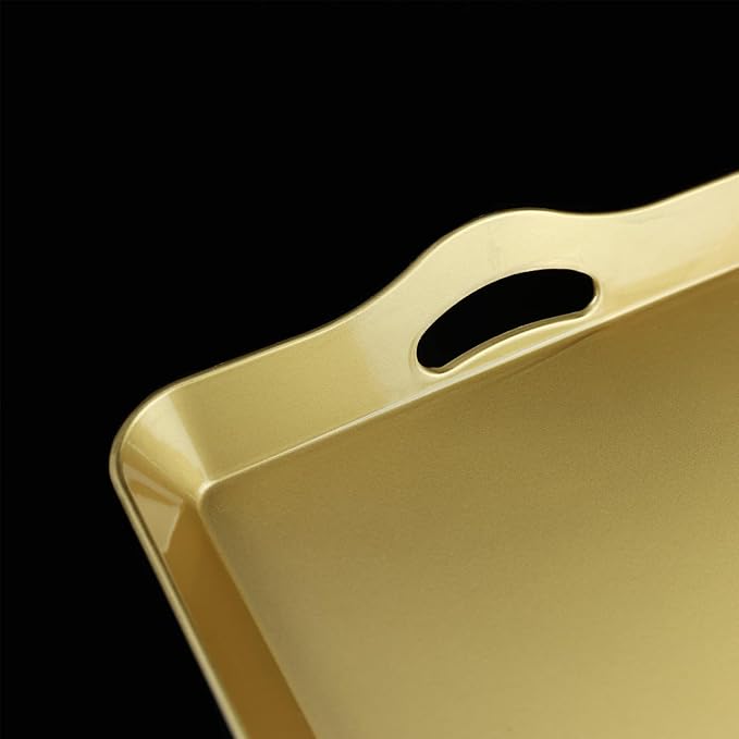 Gold Decorative Tray for Coffee Table with Handles, Plastic Rectangular Serving Tray for Living Room, Bathroom, Outdoors, 11.8"*17.3"
