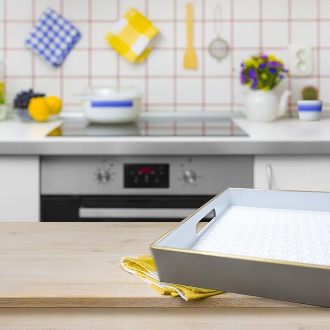 - Decorative Tray: Beautiful contemporary tray with handles, serve food or drinks, the ideal complement to your home or place of business. It’s perfect for hosting guests.