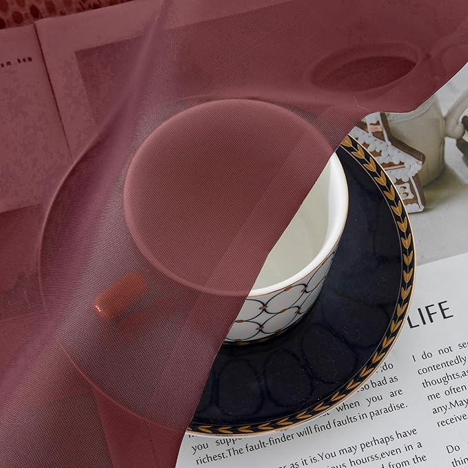 - Well Made: Each pack contains 2 pieces of 63 inch burgundy red sheer curtains, each 40" wide and 63" long with 1.5" beautiful header, total width is 80". The top 3" rod pocket is suitable for most curtain rods, which makes the sheer voile curtains easy to hang or slide.