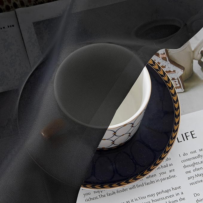 Aiyufeng Black Curtains - Farmhouse Semi Sheer Window Covering, Light & Airy Privacy Panels for Bedroom, Living Room, Patio, Glass Door, 40 inch Width x 45 inch Length, Set of 2
