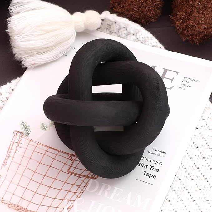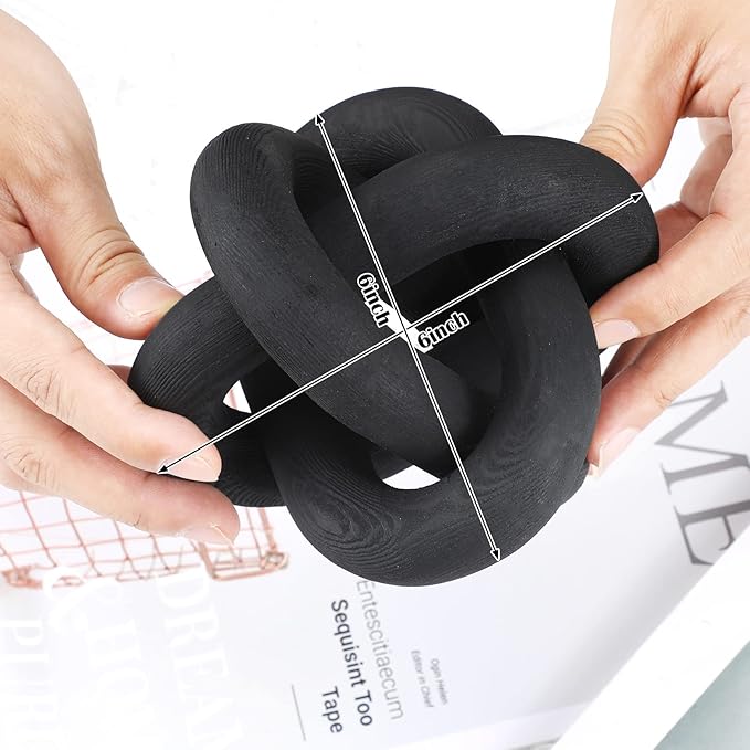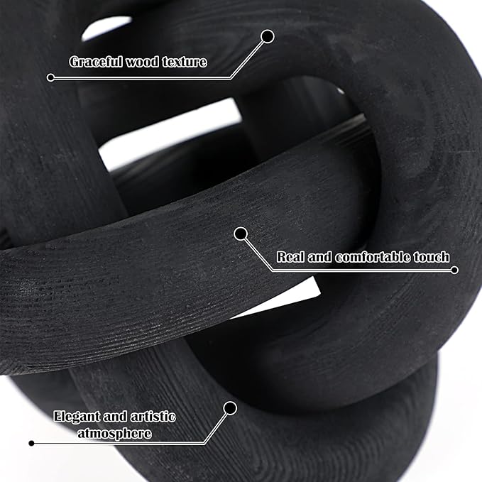 3 Link Wood Knot Decor - Hand Carved Coffee Table Decoration, Boho Chain Link Decor, Modern Shelf, Rustic Objects for Home Living Room Bedroom(Black)