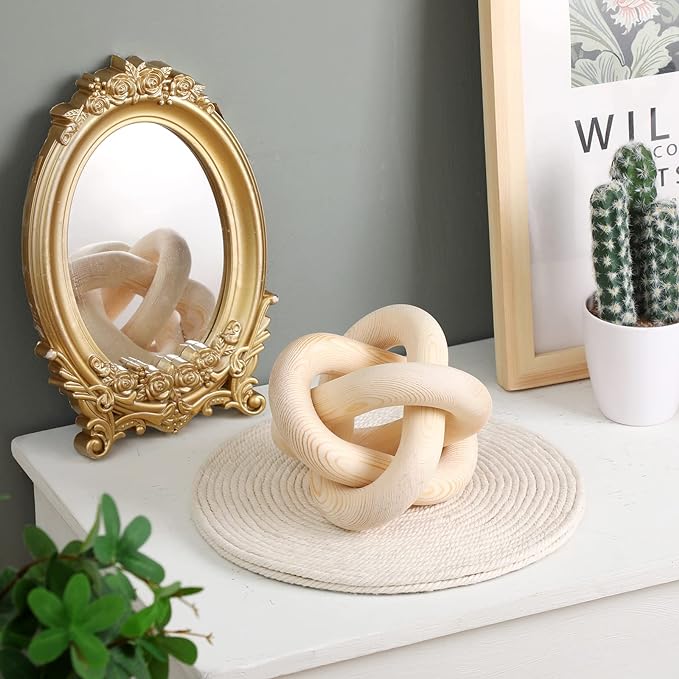 3 Link Wood Knot Decor - Hand Carved Coffee Table Decoration, Boho Chain Link Decor, Modern Shelf, Rustic Objects for Home Living Room Bedroom(Natural)