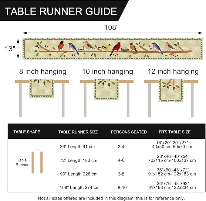 - High Quality Table Decor: This stylish table scarf is made of 100% spun polyester, durable and eco-friendly. 13" x 108" with exquisite edges. The tabletop tablecloth uses high-definition printing and bright colors are not easy to fade, and it is easy to match your house decoration. Common styles are suitable for spring, summer, autumn and winter