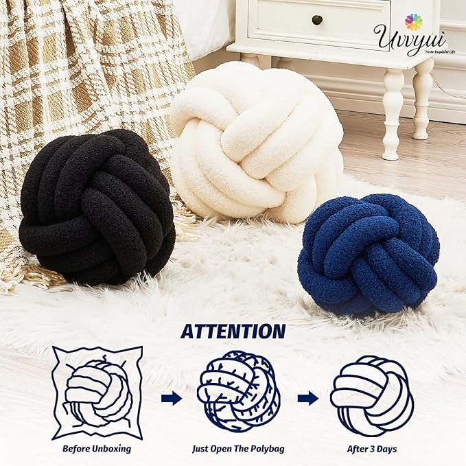 - 【COMFORTABLE EXPERIENCE】This round boucle ball pillow has the perfect height and shape to let you relax well. Regular cleaning will make it more fluffy and three-dimensional. Uvvyui knot ball pillow can be easily spot cleaned or machine washed in low temperature on gentle cycle.