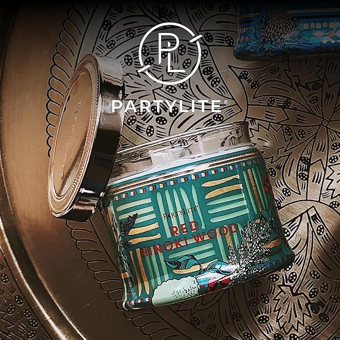 PartyLite 3-Wick Jar Candle, Highly Fragranced Clean Burning Glass Candle, 25-45 Hours Burn Time (Red Hinoki Wood)