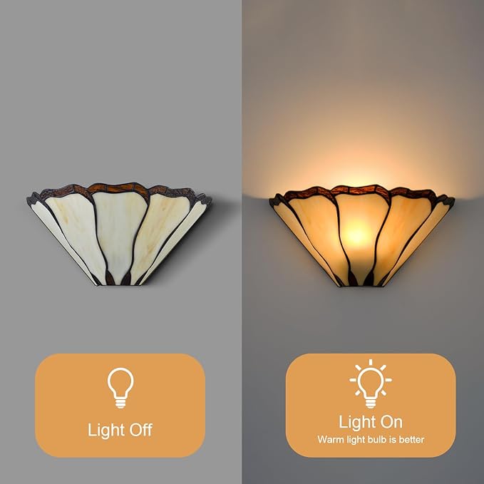 - Size: DEYNITE tiffany sconces lighting in 12 inches Wide x 5.5 inches Height, hardwired. Mission style multi-colored tiffany wall light gives off a muted and warm light when lit on.