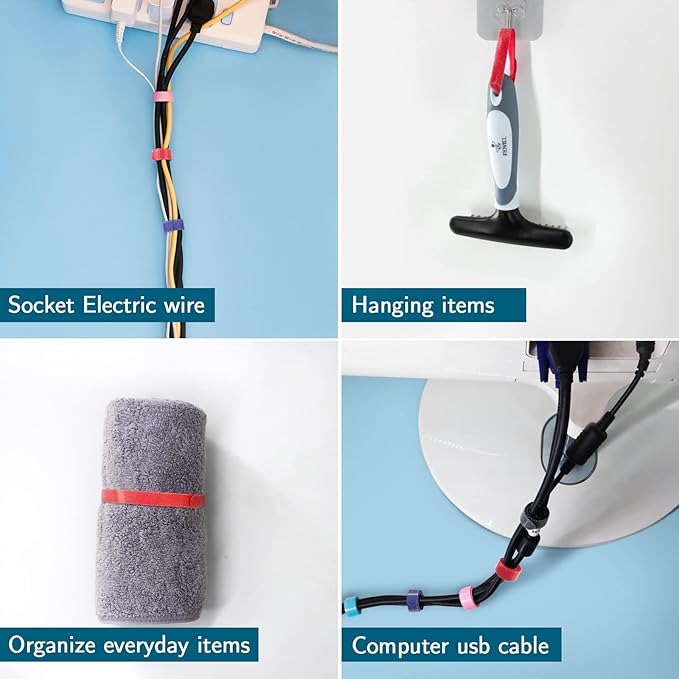 - QUALITY CABLE STRAPS: Light blue, pink, black cable ties are available in three colors; cluttered cables can become messy and dangerous, and can make repairs and maintenance work far longer than necessary. Removable cable ties for wire management are an easy and effective way to organize wires. It organizes cables better than plastic ties, and you don't need to trim it. It's ideal for keeping all types of wires tight and neat.
