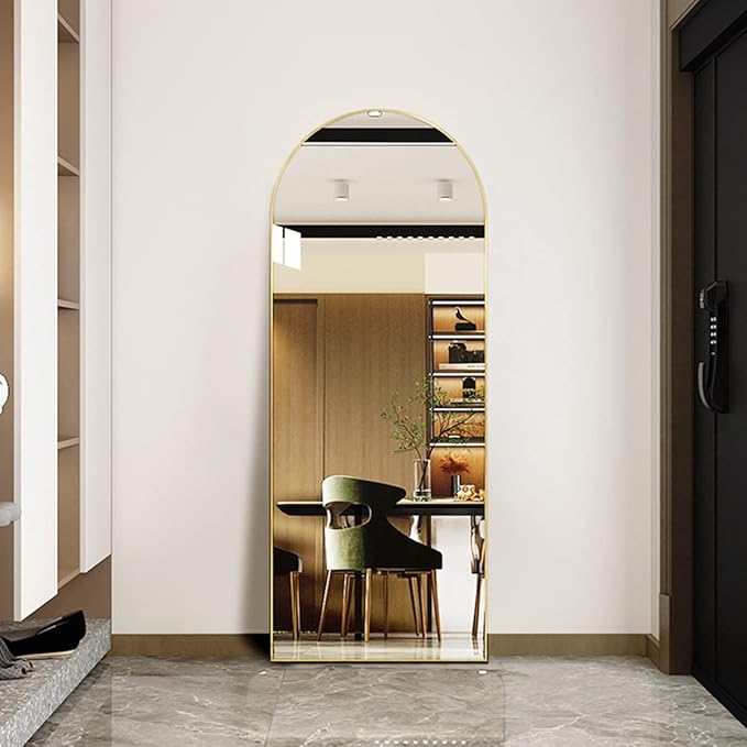 - 【DESIGN】The floor mirror has an arched top. The mirror is surrounded by aluminum alloy. The frame has texture very thin and you can move it easily. It is very conspicuous in any space and makes your room look classy.