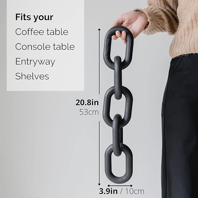 Wood Chain Link Decor - Modern Coffee Table Decor Items, Black Chain Decor for Coffee Table, Wooden Decorative Chain, Bookshelf Decor, Shelf Decor Accents, Table Decorations for Living Room