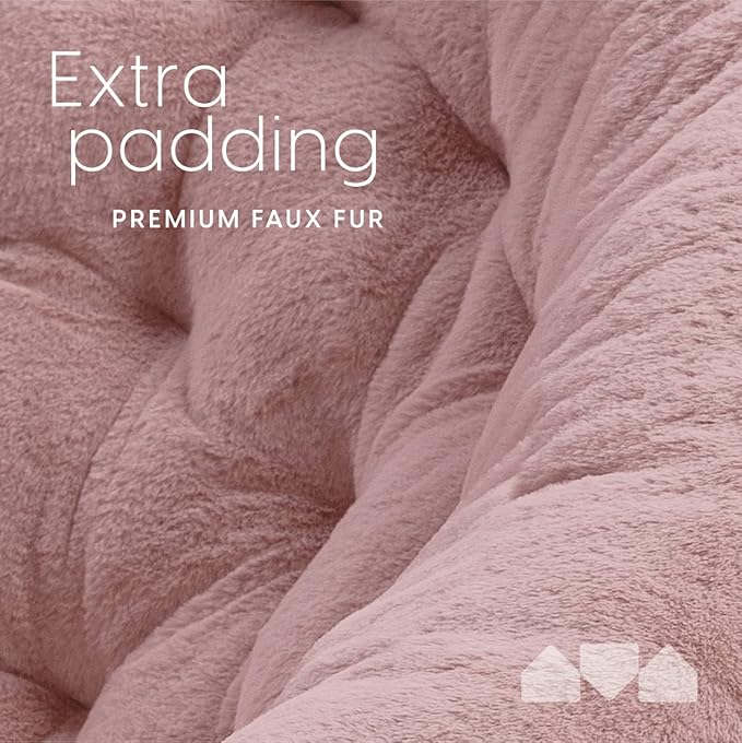 Milliard Cozy Chair with Footrest Ottoman/Faux Fur Saucer Chair for Bedroom/X-Large (Pink)