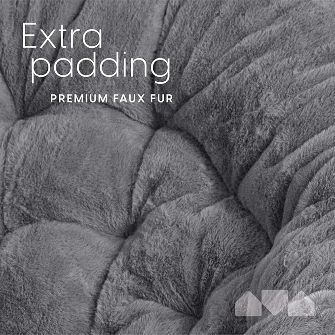 Milliard Cozy Chair with Footrest Ottoman/Faux Fur Saucer Chair for Bedroom/X-Large (Grey)